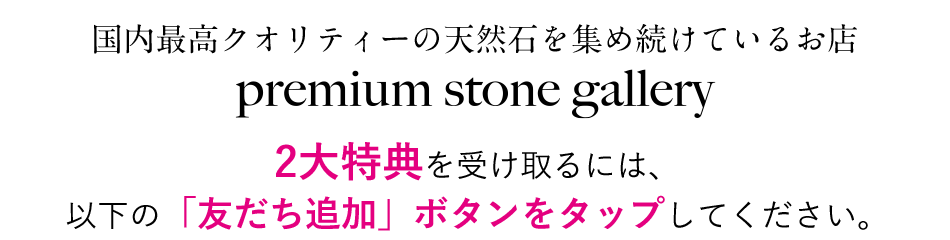 当店は、天然石を心から愛する、天然石好きの方達が集まるお店です。 premium stone galleryを通じて、もっともっと天然石を好きになってください。 この機会にお友だちになっていただけましたら嬉しいです。